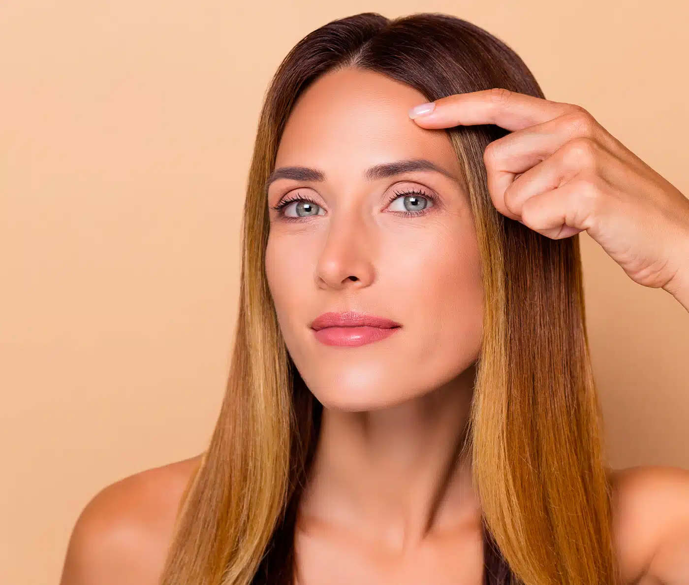 Le tiers supérieur du visage est souvent le premier touché par les rides d’expression. Des plis horizontaux se manifestent au niveau du front, accompagnés de petits traits verticaux entre les deux sourcils et qui définissent la célèbre ride du lion.